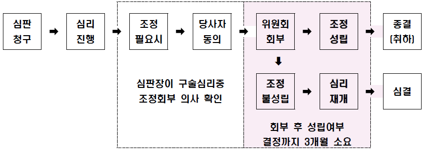 - 이에 심판 단계에서 「특허법」, 「실용신안법」, 「디자인보호법」 및 「상표법」에 따라 조정회부가 결정된 사건은 조정 신청된 것으로 간주함으로써 분쟁조정을 통한 해결을 유도하고, 조정회부된 사건 중 필요한 경우 당사자의 동의하에 해당 심판합의체의 전부 또는 일부가 조정부의 일원으로 참여할 수 있도록 하여 조정의 효율성을 제고하려는 것임(안 제49조의3 신설).