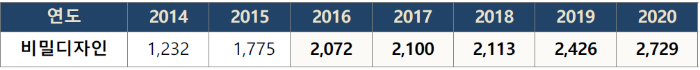 그리고 특허청 보도자료(2021. 3. 31.)에 따르면 2014년부터 2020년까지 아래와 같이 비밀디자인으로 청구되었다고 합니다.