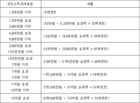 일반적인 주택에는 과세표준에 아래와 같은 세율이 적용됩니다.