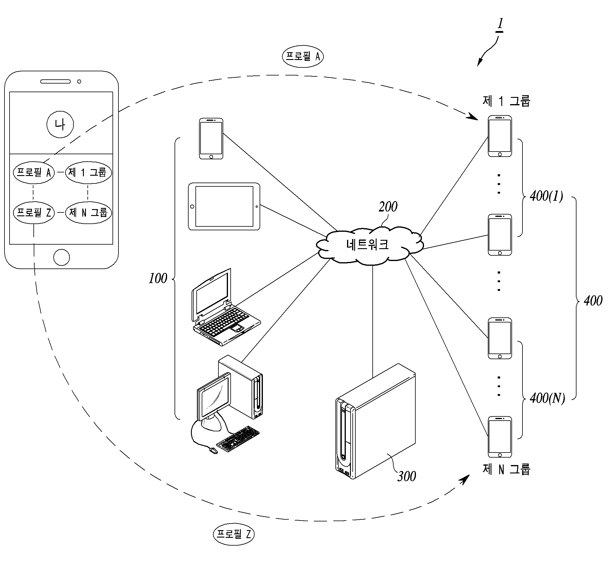 | 청구항 1 메신저 서비스 제공 서버에서 실행되는 메신저 서비스 제공 방법에 있어서, 사용자 단말로부터 이메일 계정 및 비밀번호를 입력받아 상기 사용자 단말을 등록하는 단계; 상기 사용자 단말로부터 적어도 하나의 프로필을 생성하는 다중 프로필 생성 이벤트를 수신하는 단계; 상기 다중 프로필 생성 이벤트에 포함된 프로필 사진, 및 프로필 이름을 지정받고, 상기 프로필이 노출될 그룹을 디폴트로 설정하는 단계; 상기 사용자 단말로부터 상기 생성된 다중 프로필 중 어느 하나의 프로필이 노출될 그룹을 연락처를 통하여 입력받아 그룹을 생성하는 단계; 상기 생성된 그룹에 상기 어느 하나의 프로필을 매핑하여 상기 디폴트로 설정된 그룹을 업데이트하는 단계; 상기 생성된 그룹의 메세지를 활성화할 패스코드를 상기 사용자 단말로부터 입력받아 상기 생성된 그룹과 매핑되도록 저장하는 단계; 상기 사용자 단말로부터 복수의 그룹별로 알람표시 시간 및 장소를 설정받는 단계; 상기 알람표시 시간 또는 장소 이외의 시간 또는 장소에서 상기 복수의 그룹별 메세지가 발생하는 경우, 상기 사용자 단말로 상기 그룹별 메세지를 전송하지 않도록 상기 메신저 서비스 제공 서버단에서 상기 발생된 메세지를 홀딩하는 단계; 상기 알람표시 시간 또는 장소와 일치하는 시간 또는 장소인 경우, 상기 홀딩한 그룹별 메세지를 상기 사용자 단말로 전송하는 단계; 및 상기 사용자 단말로부터 생성된 그룹이 선택되고 상기 생성된 그룹과 매핑되어 저장된 패스코드가 입력되는 경우, 상기 생성된 그룹 내에서 발생된 메세지를 활성화하여 포어그라운드 모드로 출력하는 단계; 를 포함하고, 상기 그룹 내에서 발생한 메세지에 포함된 텍스트는, OS(Operating System)의 메세지 애플리케이션에서 수신만 하는 상태로 백그라운드 모드로 출력되어 상기 사용자 단말의 알림에 표시되지 않고, 상기 사용자 단말에 저장된 연락처로 메신저 연동을 수행하지 않고, 다른 사용자 단말에서 상기 사용자 단말을 추가하는 경우, 또는 사용자 단말에서 다른 사용자 단말을 추가하는 경우, 위치가 동일할 것을 조건으로 아이디 입력, QR 코드 스캔이 된 경우 추가가 가능하고, 상기 사용자 단말에서 복수의 그룹을 설정하는 경우, 각 그룹은 동등한 레벨을 가진 2진 트리형 또는 하나의 그룹 내의 하위 레벨을 가지는 복수의 그룹을 포함하고, 상기 하위 레벨을 가지는 각 하위 그룹에 공통적으로 적용하는 사항과, 각 하위 그룹별로 나누어 적용하는 사항이 각각 분리되는 것인, 다중 프로필 및 지정 그룹채팅 호출을 이용한 메신저 서비스 제공 방법. 청구항 10 제 1 항, 제 3 항, 제 5 항, 제 6 항, 제 8 항 및 제 9 항 중 어느 한 항의 방법을 실행하기 위하여 매체에 저장된 애플리케이션. |