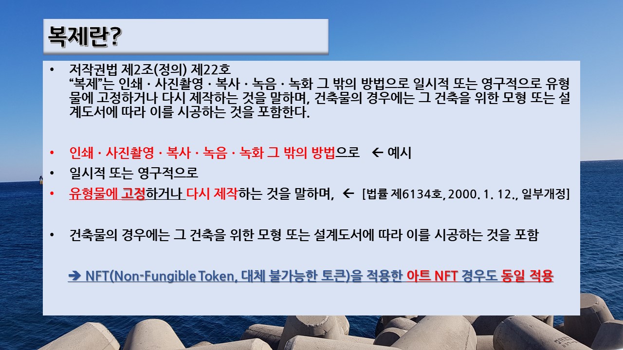 저작자: 강기봉 freekgb@gmail.com 아트 NFT와 관련 저작권 이슈와 저작물의 복제에 대해 설명합니다.