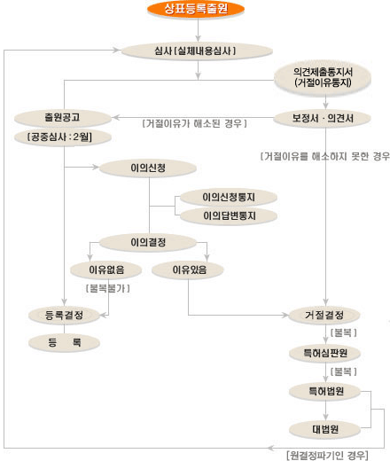 ※ 상표등록출원 및 심사절차(이미지 출처 : 특허청 https://www.kipo.go.kr/kpo/HtmlApp?c=10003)