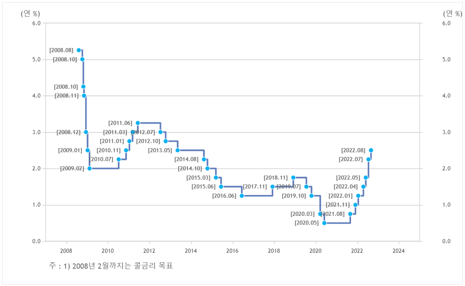 8월 25일, 한국은행 기준금리 2.5%로 0.25%p 상향 조정
